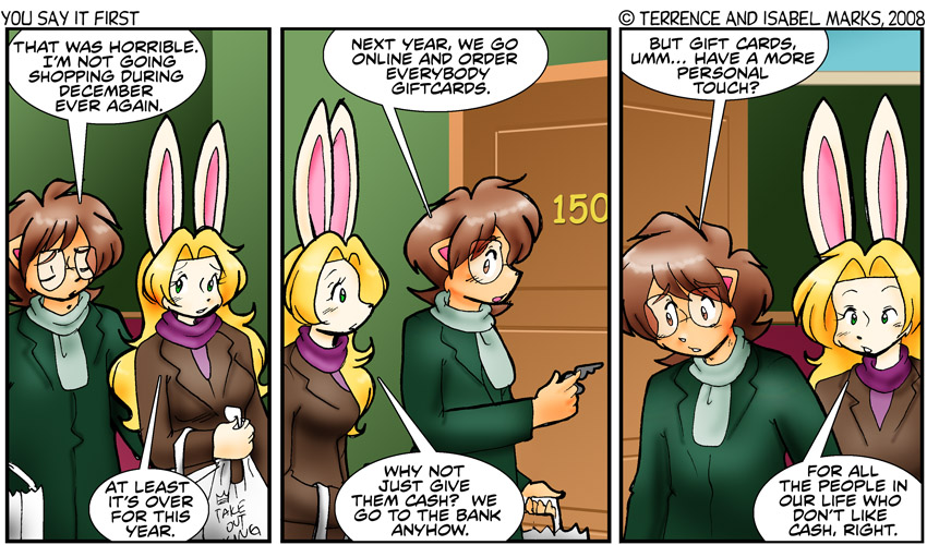 Namir Deiter - Isabel's comic Wonder Kittens - Isabel's new comic Spare Parts - our other comic, ended Unlike Minerva - the prequel to this Kevin & Kell - which we color Archive Binge - to help you catch up FBAO Blog - thought experiment in game design Other comic usefulness: |