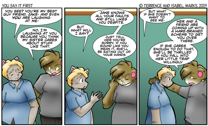 I'm not even sure what there is to say about this one... Jake seems to be letting a bit of his anger out on Robert- not to say Robert doesn't need a little sense talked into him. It does show a bit of the kind of friendship the two have... just not sure if it's showing anything good about it... -Isabel