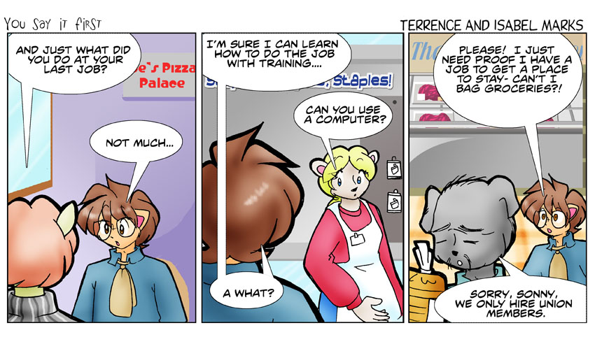 Yes, Unlike Minerva is fairly technophobic at heart. And yes, this comic aired slightly after the California grocer's strike.
