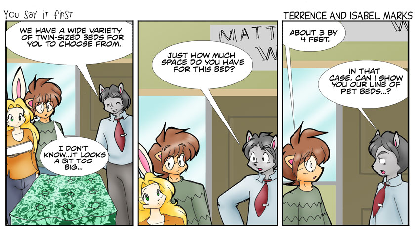 He should've suggested it *before* they went bed shopping