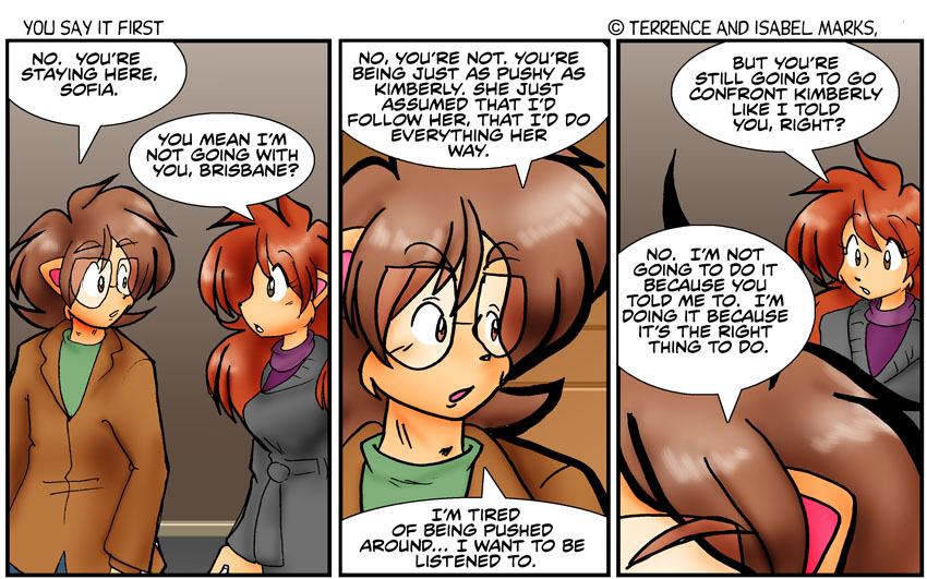 Sofia has grown as a person too. The Sofia of Unlike Minerva would've arbitrated - both sides plead their case and she makes a final decision for both of them. Not that compromise is a practical solution; it's about respect and Brisbane has been compromising that for the longest time - Terrence Modern Commentary