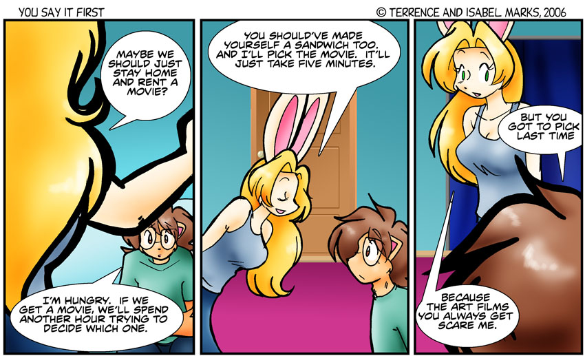 So where is Kimberly's sandwich? I asked Terrence that when I was drawing this comic and according to him she ate it off-panel... so Brisbane really must have been on some kind of tirade about where they were going. -Isabel Modern Commentary