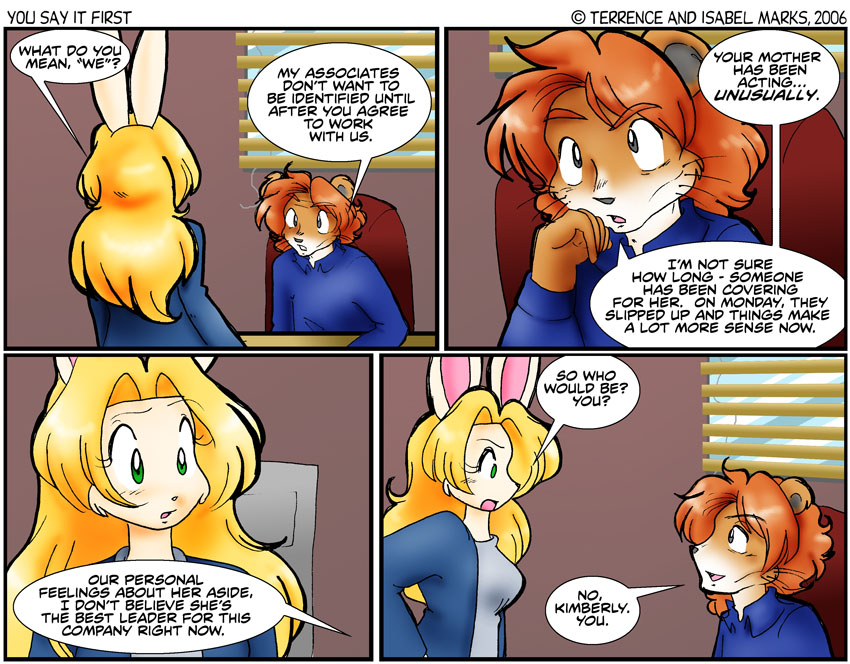 Regarding the previous commentary, I never did detail the fight that Kimberly and her mom had. It was meant to be a reference to the previous storyline.