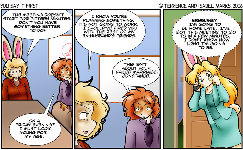 Kimberly is, of course, outside the room that those two are inside. I spent a while trying to figure a way to work that into the dialogue before I decided to just have an open door. There's a real tension between Dan and Ms. Thompson there - it's even more obvious in the full-size version - Terrence