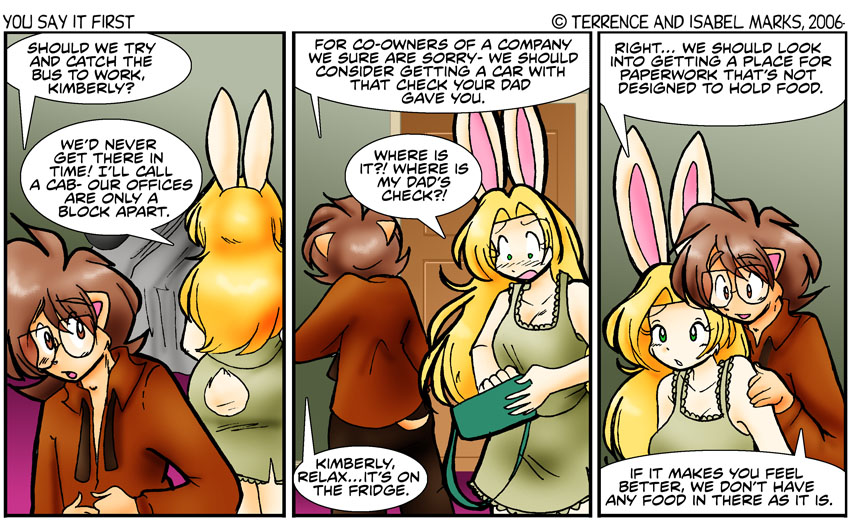 The girls of ND, when you see them in lingerie, they wear underwear. The women of You Say it First wear slips. Make of that what you will. I know I've had moments like that where I'm like "OMFG! Where's this really important thing!" Usually they invovle money too. But not quite as large an amount - Isabel