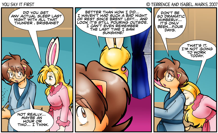 This has been the first time we've seen that window open like that... I actually ended up just hand drawing that due to time (sometimes it takes longer to digitally make backgrounds). I really love how whiney and complaining Kimberly is in this arc... as professional and serious as she can be at times, it's nice to see her open up and show her weaknesses around Brisbane. -Isabel