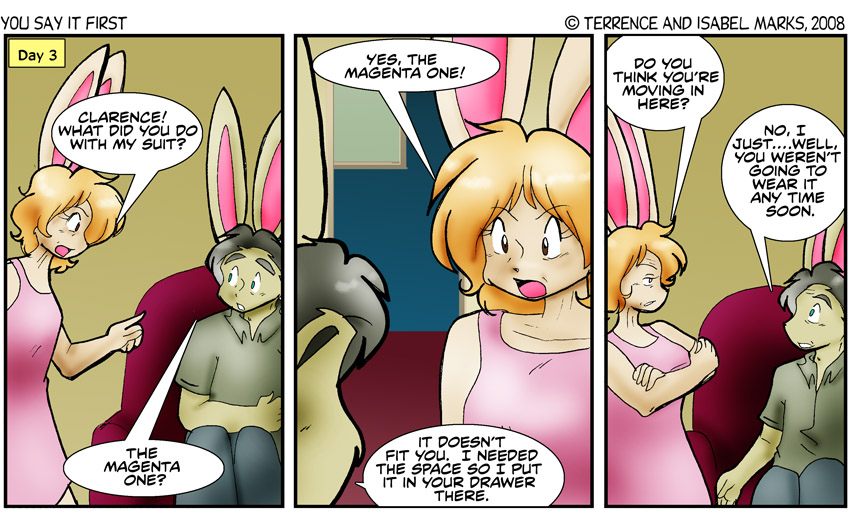 Is it just me, or does the gal love her purples, pinks and magentas? those are the types of people one should avoid in life, I know, as I am one. XO (And I'm not under minding Terrence's script- the one that went up was the best one for the comic. I just thought this one was silly and should be shared ^_^)-Isabel Modern Commentary