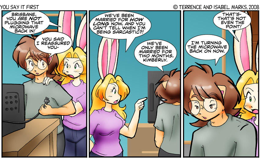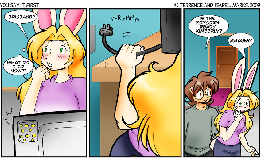 We're hoping that nobody who designs microwave ovens for a living is reading this, because there's probably a really technical name for the safety features on a modern microwave, and a complicated answer to whether Brisbane or Kimberly is right. Brisbane sure doesn't know what it is. He does, however, want popcorn - Terrence Modern Commentary