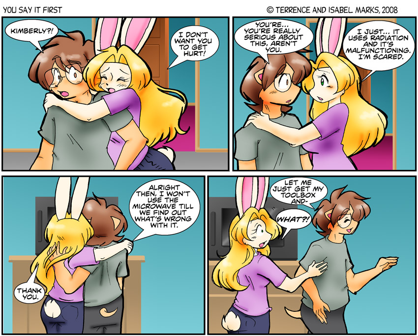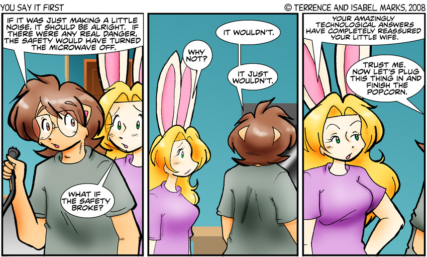 Yes, the microwave is glowing and making a crackling sound. Not normal, as you can tell by the sound effects. Those effects are in a font we made from Isabel's handwriting - Terrence Modern Commentary