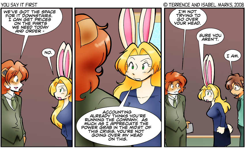 This would have been a good time to cut away for a comic or two instead. The way I staged it, it looks like he just vanished, instead of him stepping away because he and Kimberly are trying to do everything everywhere.