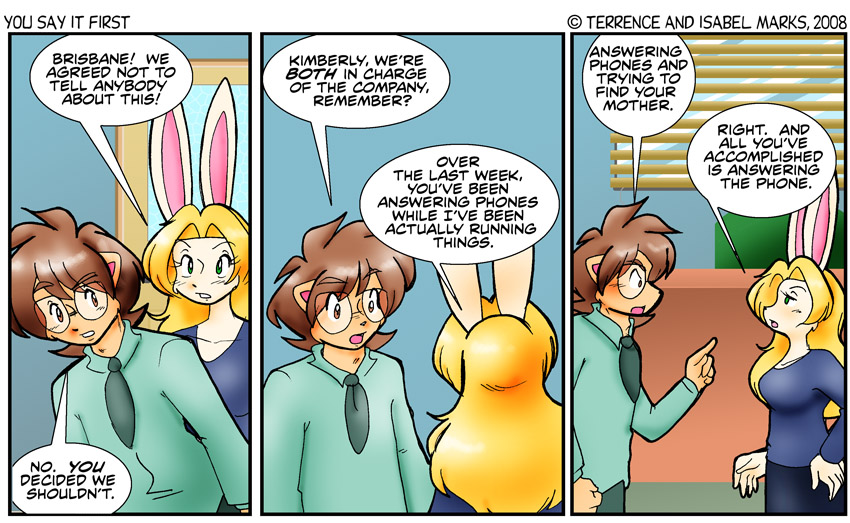 Terrence wasn't too sure he liked the role reversal here, with Brisbane thinking of the quick money making scheme with Kimberly not taking him seriously. I told him not to worry, Kimberly is too busy doing everything else to come up with the ideas (I'm sure she would have already come up with one on one of her better weeks). -Isabel Modern Commentary