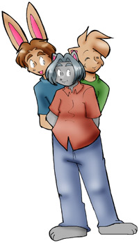 These three guys can usually be found in the communal lounge at Brisbane and Kimberly's apartment, watching TV together. That TV never gets good reception, and they each have their own opinion about what's on. All three of them have a crush on Lola; none of them seems to be doing much to individually pursue it, but they seem awfully jealous of any men she might be interested in. She doesn't appear to be interested in them. It's not clear what else they do with their time. They probably have names. Probably. Appears in:
