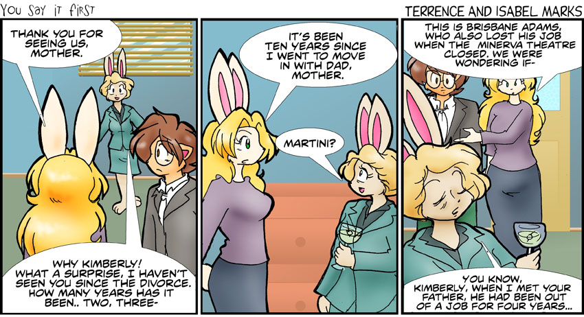 Anyhow, per a later comic, Mr. Taylor joined the company just out of college. So Ms Taylor is technically correct. And, y'know, we fill in details as we go along. A lot of our writing process is just understanding the characters more thoroughly. When things go right, it feels like we're uncovering things that had always been there, rather than making up new things. - Terrence