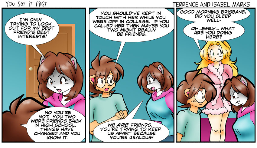 Her friendship with Brisbane isn't the cause of that. It's her way forward to something else. But if you want things to go back to how they once were, then taking him out of the picture is the first step. - Terrence