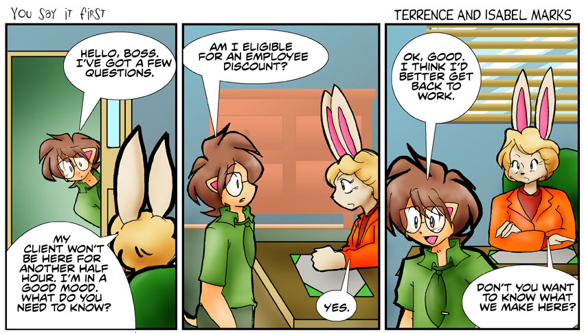 "What does Lemon Technology do?" was one of our frequently asked questions, both before and after this comic. Brisbane doesn't work with anything customer-facing. At this point, he's just a general lackey and mail guy. The sales department and delivery department are mostly separate fiefdoms that he barely interacts with. - Terrence