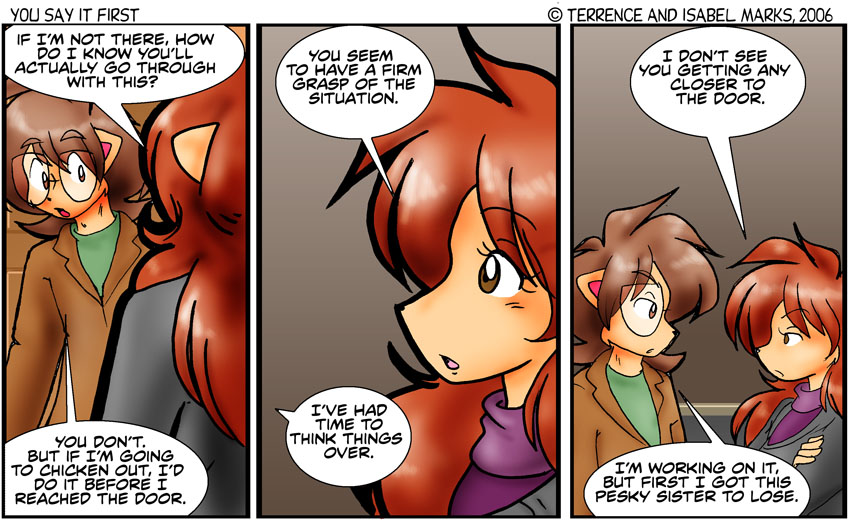 And whatever I had originally wrote got overwritten. But a comic about Brisbane not moving forward towards the big confrontation is also, metatextually, a comic about me not having written that comic with the big confrontation yet. - Terrence