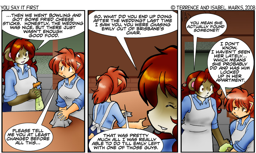 Terrence originally was going to write one of two different story arcs he has thought up, but he is rather written out from his last wonderful arc. So, I'm giving him a week off with a little info on just what happened to a few other elements behind the scenes of the wedding...